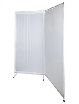 Боковые секции могут поворачиваться относительно центральной секции на 360°. Центральная секция имеет широкие опоры размером 420 мм. Центральная секция ширмы устанавливается на четыре мебельных колеса диаметром 50 мм, а боковые — на одно колесо. Каркас покрыт полимерным покрытием белого цвета.