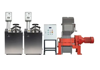 Данное оборудование предназначено для переработки медицинских отходов физическим методом обеззараживания (дезинфекция насыщенным паром в условиях предварительного вакуума) с последующей механической деструктуризацией путем измельчения в шредере.